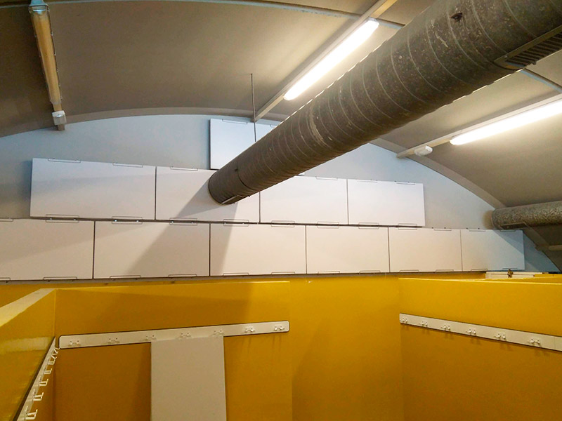 La obra ha consistido en la colocación de bafles fonoabsorbentes (espacios húmedos) en parte de las paredes de las instalaciones.